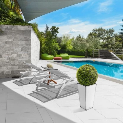 Fiberglas ist ein sehr leichtes Material, daher können Sie die Pflanzkübel problemlos verschieben oder heben. Der Pflanzkübel ist zusätzlich mit einem wasserdichten Einsatz aus Kunststoff ausgestattet. Dieser kann schnell und einfach außerhalb des Kübels bepflanzt werden.