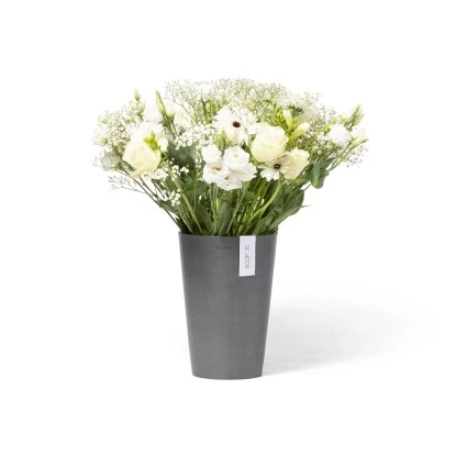 Die Ecopots Vase Pisa ist die perfekte Wahl für alle, die auf der Suche nach einer stilvollen und praktischen Vase sind. Mit ihrem gerundeten Innenboden und dem stabilen Boden bietet sie nicht nur eine einfache Reinigung, sondern auch ausreichend Platz für große Blumenarrangements.