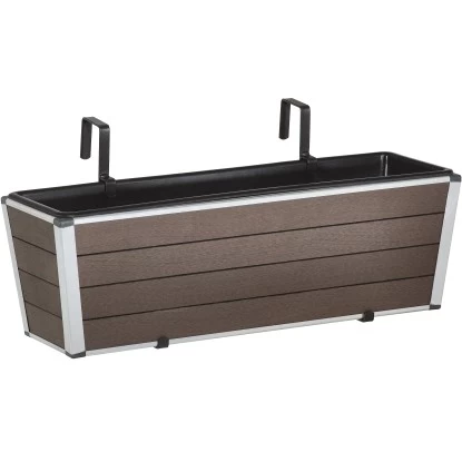 Der Balkonkasten WPC inkl. Aufhängung sorgt für dekorative Akzente und ist ein Blickfang für Balkon und Garten. Der Balkonkasten ist hochwertig aus WPC gefertigt und mit Hilfe einer schönen Alukante abgerundet. Wetterfest und UV-beständig. Ein einfaches Abwischen genügt und schon sieht der Balkonkasten wie neu aus. WPC ist splitterfrei und es ist keine Nachbehandlung notwendig. Ein nachhaltiger und ökologischer Anbau ist durch den schnell nachwachsenden Rohstoff Bambus gewährleistet. Der Balkonkasten besitzt eine integrierte Halterung, die Aufnahmeöffnung ist für bis zu ca. 5,5 cm breite Balkonbrüstungen bzw. Geländer geeignet. Der Kunststoffeinsatz zur Bepflanzung kann bequem außerhalb des Gefäßes bepflanzt und dann eingesetzt werden.