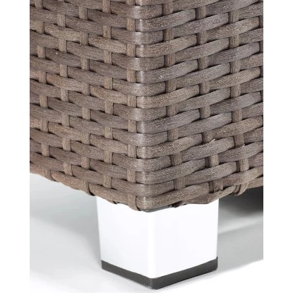 Der Pflanzkübel Polyrattan ist ein Pflanzgefäß für den Innen- und Außenbereich und setzt dekorative Akzente im Haus, auf der Terrasse oder im Garten. Das Pflanzgefäß ist aus einem hochwertigem PE-Kunststoffgeflecht hergestellt, das über einen rostbeständigen Alu-Rahmen gewebt ist. Die Faser ist UV- und temperaturbeständig, langlebig und pflegeleicht. Der Kunststoffeinsatz kann bequem außerhalb des Gefäßes bepflanzt und dann eingesetzt werden und bietet mit einer Größe von 24 cm x 24 cm x 24,5 cm ausreichend Platz. Gegenüber Einsätzen aus anderen Materialien bietet dieser den Vorteil, nicht zu rosten und absolut wasserdicht zu sein. Bei Außenaufstellung einfach ein Loch in den Boden bohren, um Staunässe zu vermeiden. Das Pflanzgefäß ist mit dekorativen Aluminium-Füßen versehen.