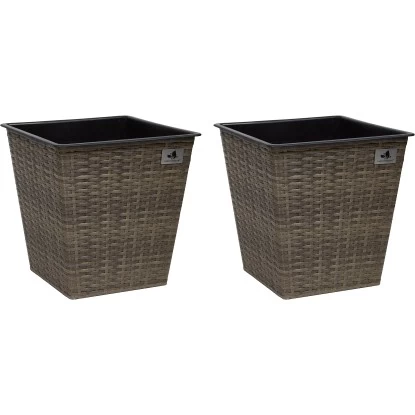 Das Pflanzgefäß Polyrattan 2er-Set eignet sich für den Innen- und Außenbereich und setzt dekorative Akzente im Haus, auf der Terrasse oder im Garten. Die Pflanzgefäße sind aus einem hochwertigem PE-Kunststoffgeflecht hergestellt, das auf einen wasserdichten Kunststofftopf aufgebracht ist. Die Faser ist UV- und temperaturbeständig, langlebig und pflegeleicht. Bei Außenaufstellung einfach ein Loch in den Boden bohren, um Staunässe zu vermeiden.