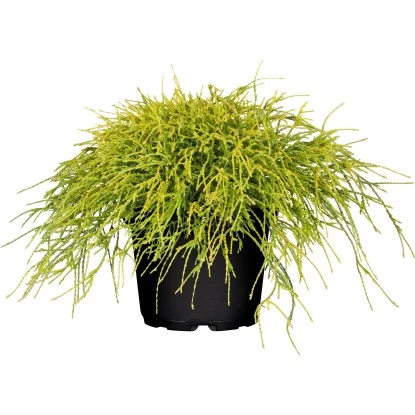 Die GROW by OBI Gelbe Faden-Zypresse „Filifera Sungold“ (Chamaecyparis pisifera) wächst flachkugelig mit überhängenden Trieben. Eine besondere Eigenschaft sind die fadenförmigen Zweige mit goldgelber Färbung. Die Zypresse ist sehr frosthart und sollte am besten einen sonnigen Standort erhalten, um ihre tolle Färbung zur Geltung zu bringen. Chamaecyparis pisifera „Filifera Sungold“ erreicht eine Höhe von bis zu 100 cm.