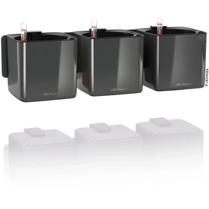 Dank der praktischen Magnethalter lassen sich die drei Cube Glossy Gefäße einfach an der dazugehörigen Metallleiste an der Wand befestigen. Die hochwertigen, extra starken Magneten sorgen für einen sicheren Halt. Außerdem sind die Pflanzgefäße mit dem Lechuza-Bewässerungssystem ausgestattet, die eine einfache Pflege und Versorgung der Kräuter gewährleistet.