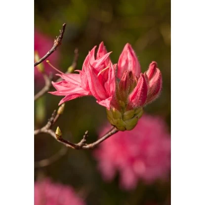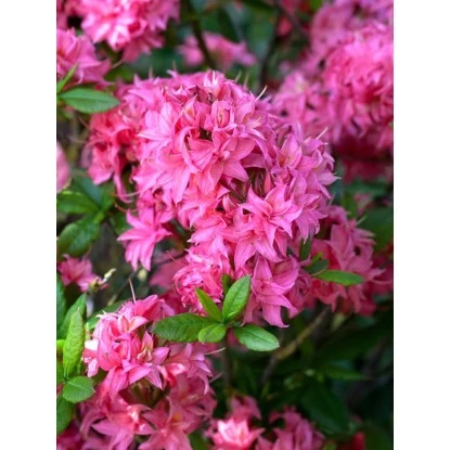 Die Sommergrüne Azalee „Homebush“ (Rhododendron luteum) blüht von Ende Mai bis Mitte Juni üppig mit pinkfarbenen Blüten. Diese kompakte, breit wachsende, verzweigte, buschige Azalee erreicht gewöhnlich eine Höhe bis zu 1,5 m und bevorzugt einen halbschattigen Standort. Die ideale Pflanzzeit ist das Frühjahr oder der Herbst.