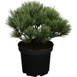 Die Zwerg-Seiden-Kiefer „Secrest“ (Pinus strobus) wächst kugelig und kompakt mit einer intensiv blaugrünen, weichen Benadelung. Sie ist sehr schön in Steingärten oder Gefäßen zu verwenden. Der Boden sollte dabei gut durchlässig sein, ansonsten ist diese Pflanze sehr standorttolerant.