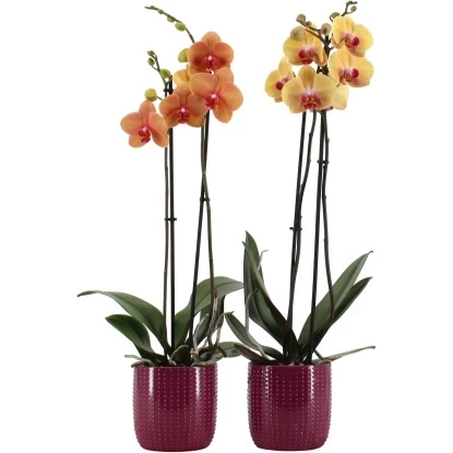 Schmetterlingsorchidee 2-Trieber Vers. Farben Im Keramik-Gefäß Topf Ø Ca. 12 Cm