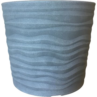 Das Pflanzgefäß verfügt über eine 3D-Wellenoberfläche, wodurch eine variierende Optik je nach Lichteinfall und Schattenwurf entsteht. Darüber hinaus ist das Pflanzgefäß witterungs- und UV-beständig und für den In- und Outdoorbereich geeignet.