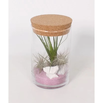 Das moderne Tillandsien-Arrangement im Korkenglas eignet sich ideal als Dekoration für Ihr Badezimmer.