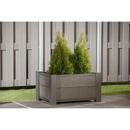 Der rechteckige Pflanzkasten in modernem Design ist ein Blickfang im Garten oder auf Ihrer Terrasse. Das pflegeleichte Material ist einfach abwaschbar und muss nicht gestrichen werden.
