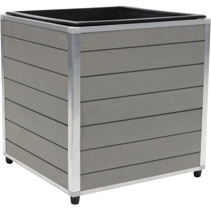 Das Pflanzgefäß Quader „Monaco“ in Grau besteht aus einem Verbundstoff von Holz und Kunststoff (WPC) und besticht mit seinem klassisch, elegantem Design. Durch seine Verarbeitung ist der Pflanztopf sehr robust und beständig gegenüber Witterungsverhältnissen wie Frost und UV-Strahlung. Der Rahmen ist aus rostfreiem Aluminium. Aufgrund dieser schönen silberfarbenen Alu-Kante setzt er dekorative Akzente im Innen- und Außenbereich. Im Lieferumfang enthalten ist der passende Pflanzeinsatz aus Polypropylen. Sie erhalten einen stabilen Behälter für Pflanzen, der auch optisch lange Zeit überzeugt.